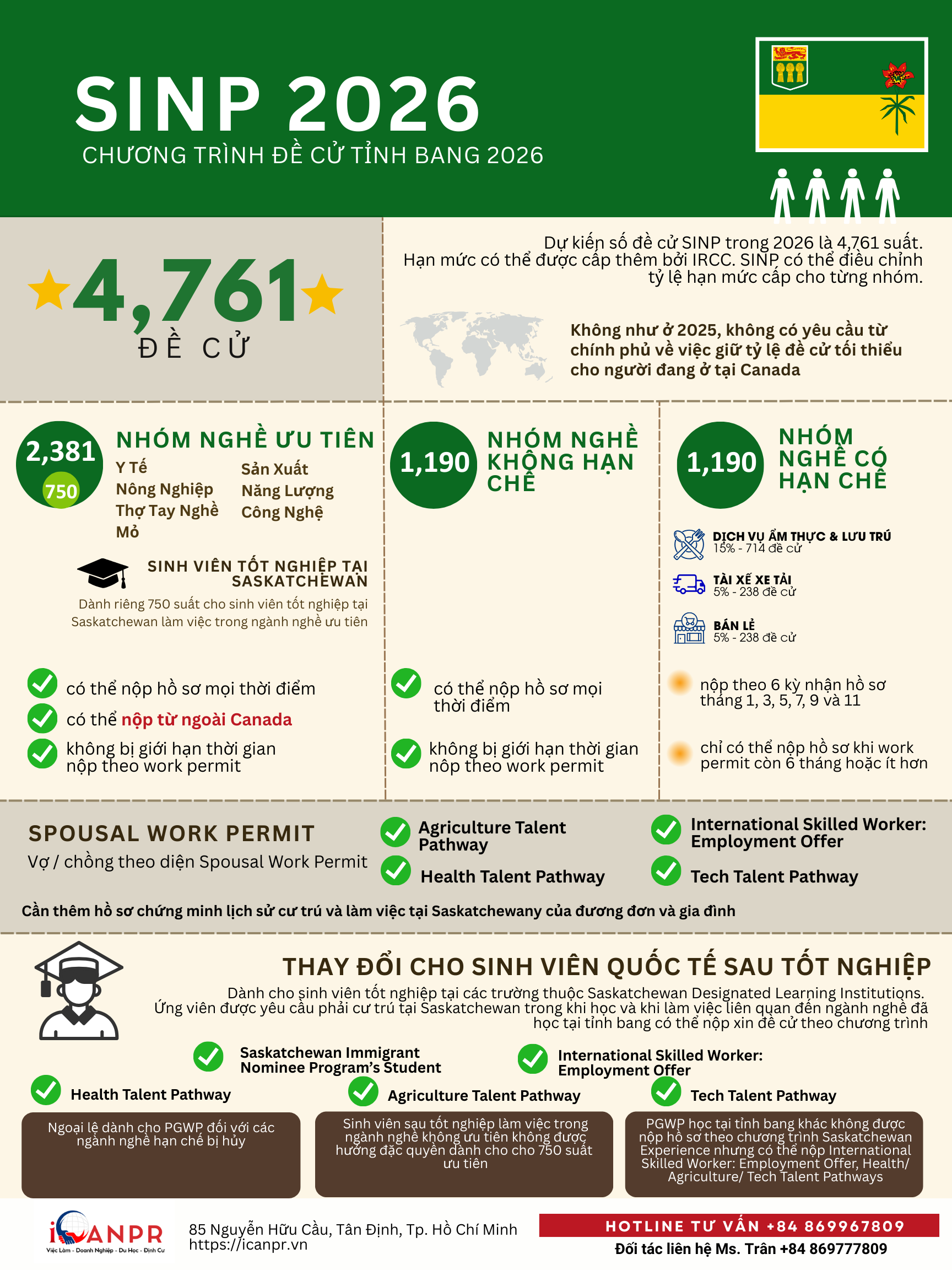 Chương trình Đề cử Tỉnh bang Saskatchewan (SINP) được thiết kế nhằm thu hút những cá nhân có tay nghề, kinh nghiệm đến sinh sống và làm việc tại Saskatchewan.