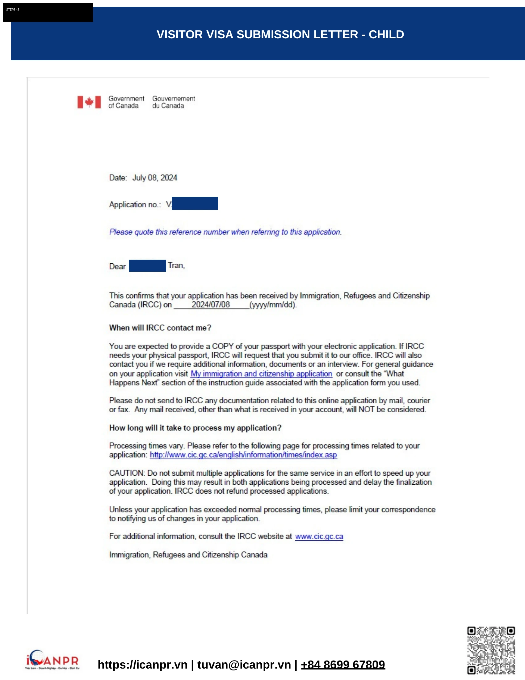 Nộp đồng thời: Work Permit cho chính và vợ, Visitor Visa cho con trai, và PR Application (Provincial Nominee Program) — tất cả vào ngày 08/07/2024. Biometric hoàn tất ngày 12/07/2024. Chiến lược song song giúp tiết kiệm nhiều tháng chờ đợi.